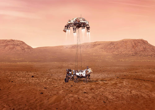 2020年4月24日,中国行星探测任务被命名为“天问系列”,首次火星探测任务被命名为“天问一号”,后续行星任务依次编号。 7月6日,百度App与中国火星探测工程正式签署合作协议,推出“追踪火星计划”。7月23日12时41分,长征五号遥四运载火箭 托举着我国首次火星探测任务“天问一号”探测器,在中国文昌航天发射场点火升空。2021年3月4日,国家航天局发布3幅由 我国首次火星探测任务天问一号探测器拍摄的高清火星影像图,包括2幅黑白图像和1幅彩色图像。4月24日,中国首辆火星 车命名为“祝融号”。5月14日,据国家航天局官网消息,根据飞行情况,天问一号探测器拟于北京时间5月15日凌晨至5月 19日期间择机着陆于火星乌托邦平原。5月15日7时18分,科研团队根据“祝融号”火星车发回遥测信号确认,天问一号着陆巡 视器成功着陆于火星乌托邦平原南部预选着陆区,我国首次火星探测任务着陆火星取得圆满成功。